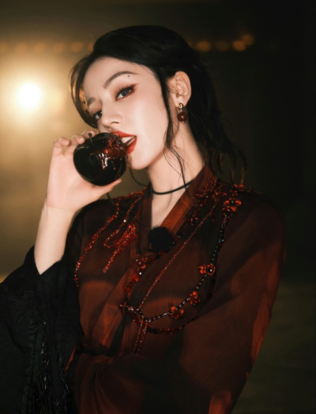 디리러바(Dilraba)가 암홍색의 창파오(长袍)를 입고 유령의 신부로 변신을 꾀했다. 안개 속에서 춤을 추고 있는 그녀의 모습은 정말이지 기묘하면서도 너무나 아름답다. 《克拉恋人 극랍연인, 다이아몬드 러버》에서부터 《三生三世十里桃花 삼생삼세십리도화》에 이르기까지 이 신장(新疆)의 여신은 실력으로 금응장(金鹰奖)에서 드라마 최우수여우주연상을 수상한 이후, 그녀는 새로운 화보로 다시 한 번 온 인터넷을 깜짝 놀라게 했다.